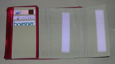 Den Kartenteil hab ich einmal äh... quasi um sich selbst geknickt, so dass ich nur noch zwei Falten habe und nicht immer erst ausklappen muss wie ne Blöde, wenn ich an der Kasse stehe und mit Karte zahlen will. Und ich hab ein Fach für Papiergeld respektive Kassenzettel (ich führe brav Buch seit Anfang Januar!) dazugemacht. Und das Kleingeldfach verbessert. Und an mehreren Stellen Bügelvlies zum Verstärken reingemacht.